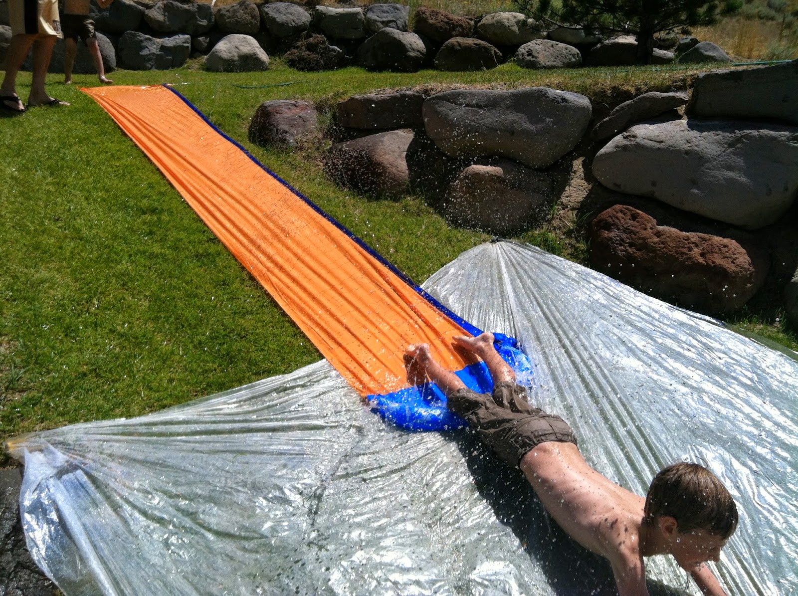 We love having my aunt living just a half hour south of us. She has the most amazing yard- just 2 streets under the Draper temple and with lots of amazing hills- perfect for sledding in the winter and slip and slides in the summer.
